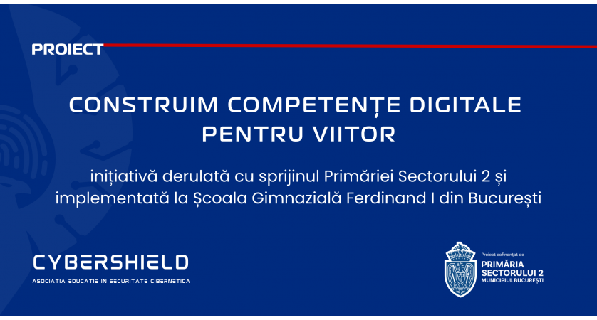 Asociația Educație în Securitate Cibernetică - CyberShield®, dezvoltă proiectul „Construim competențe digitale pentru viitor”, inițiativă derulată cu sprijinul Primăriei Sectorului 2 și implementată la Școala Gimnazială Ferdinand I din București, în baza unui protocol de colaborare semnat cu unitatea de învățământ, care stabilește cadrul, responsabilitățile și obiectivele educaționale urmărite pe parcursul derulării activităților. Proiectul aduce în sala de clasă un set coerent de sesiuni aplicate, materiale actualizate și exerciții structurate, astfel încât elevii și profesorii să poată înțelege riscurile curente din mediul online și să exerseze, în condiții controlate, decizii corecte care reduc expunerea la fraude, manipulare și pierderi de date.