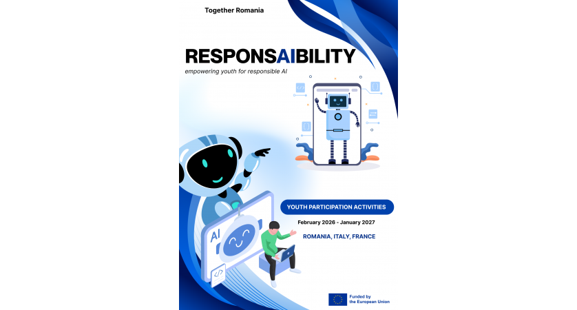 Asociația Together România anunță lansarea proiectului „ResponsAIbility”, finanțat prin Programul Erasmus+, Acțiunea KA154 – Youth Participation Activities, proiect numar 2025-3-RO01-KA154-YOU-000370668. Proiectul se va desfășura în perioada 1 februarie 2026 – 31 ianuarie 2027 și este implementat în parteneriat cu organizațiile YOUth Connect din Italia și Youth ID din Franța.